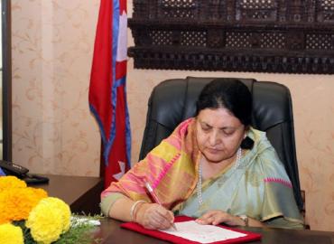 काठमाडौँ– राष्ट्रपति विद्यादेवी भण्डारीले नागरिकता सम्बन्धी अध्यादेश जारी गरेकी छन् । आइतवार राष्ट्रपति भण्डारीले नेपालको संविधानको धारा ११४ को ...